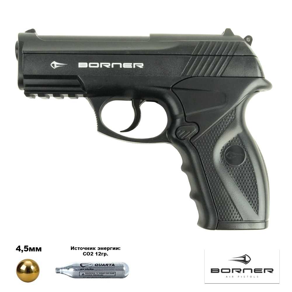 Пистолет Борнер С11 входит в группу бюджетного оружия, но это нисколько не умаляет его качества. Пневматический механизм модели ориентирован на непривередливого потребителя, который хочет иметь точное, надежное и мощное оружие без дополнительных параметров. Серьезная убойная сила пистолета проявляется на незначительных расстояниях. Технические характеристики данной модели отлично сочетаются со стильным дизайном внешнего вида.