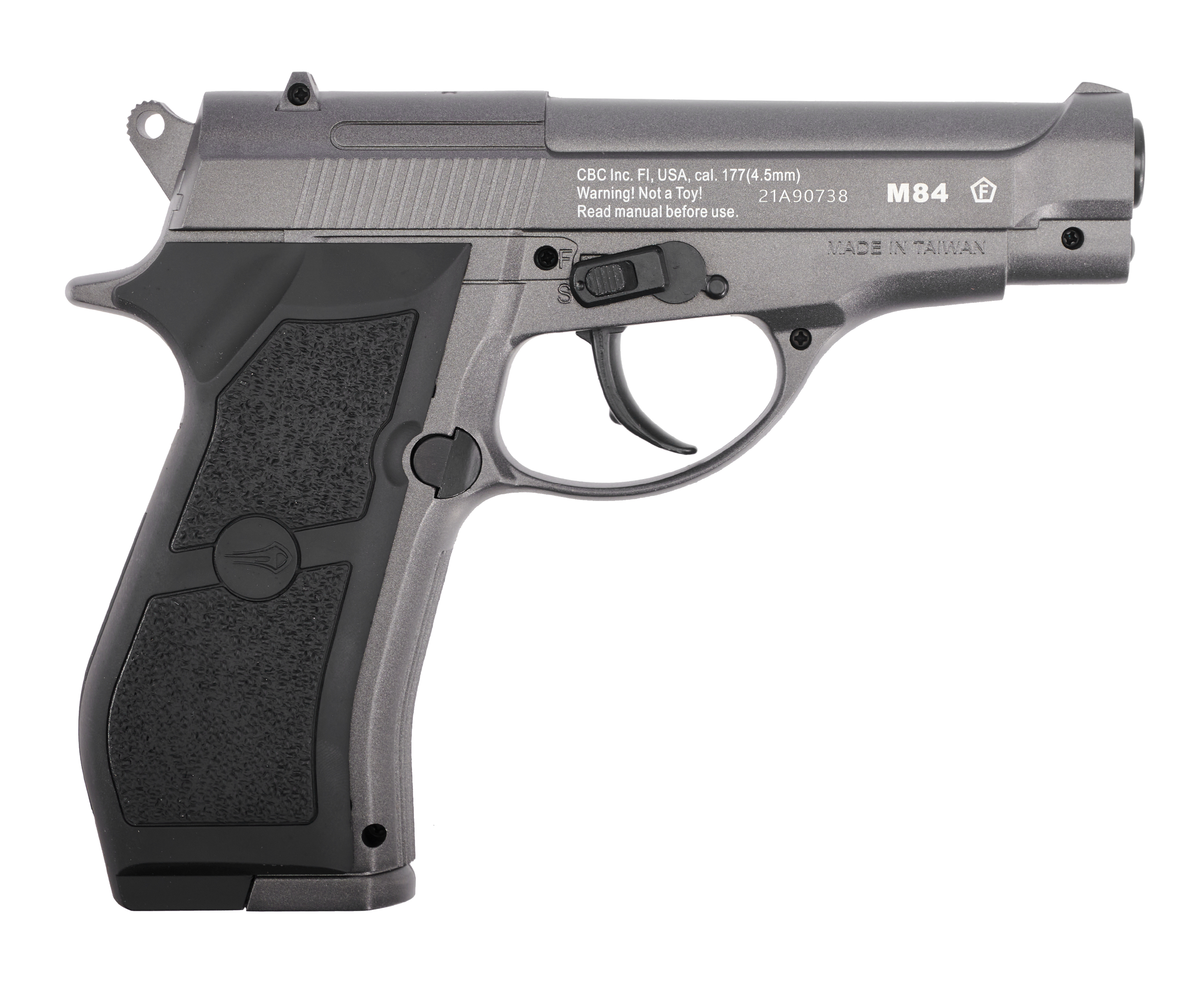 Монолитный корпус оружия не имеет движущихся элементов, исключение составляет лишь спусковой крючок. Методом литья выполнены рычаг затворной задержки и курок, внешняя имитация боевого пистолета очень правдоподобна. Пневматика Borner M 84 имеет предохранитель, расположенной на правой рамке и выполненный как рычажок с миниатюрным переключателем.